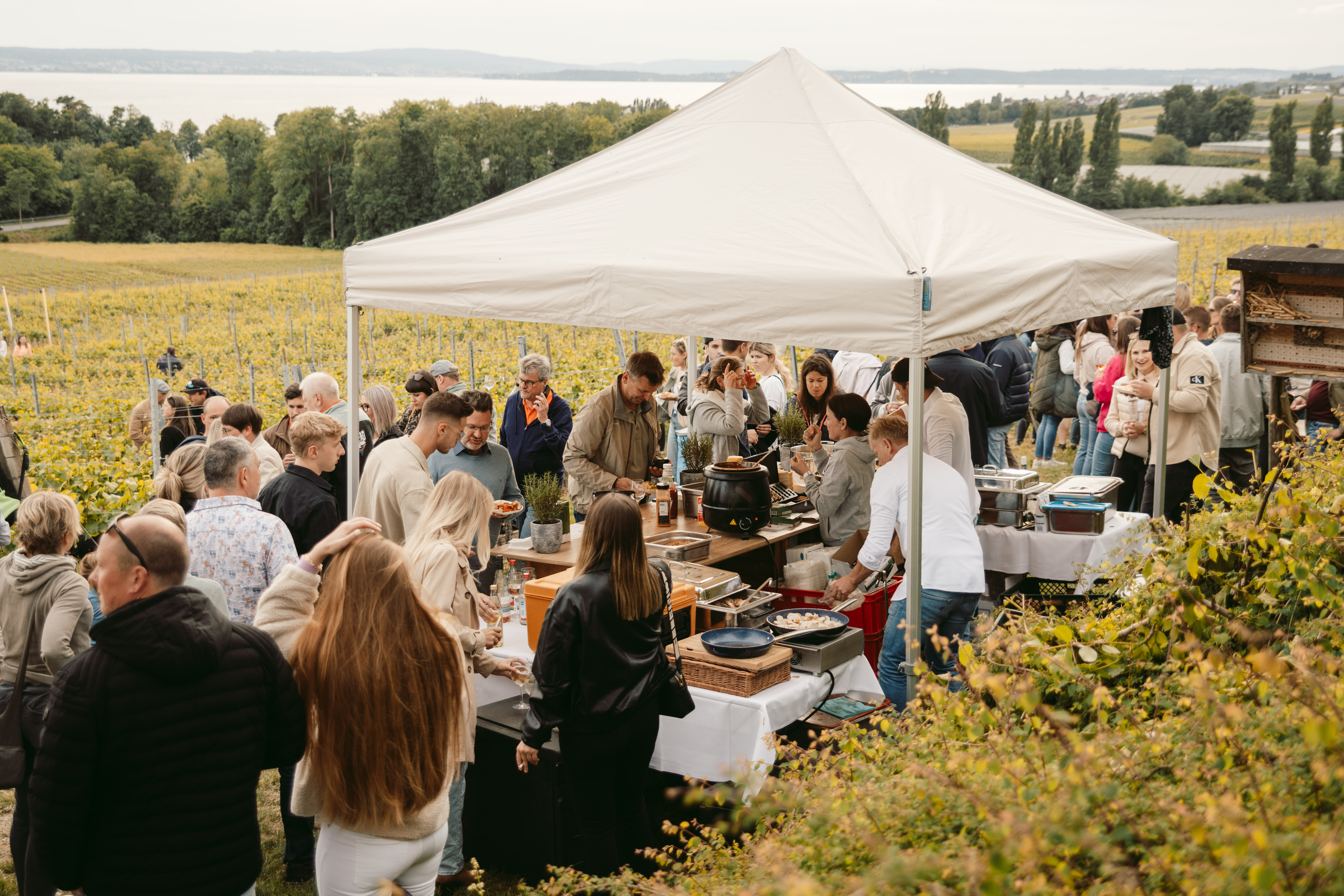 In stimmungsvoller Atmosphäre, umgeben von den sanften Rebhängen und dem Bodenseepanorama, verwandelte sich der Hohberg in Immenstaad für einen Abend in einen Treffpunkt für Weinliebhaber, Entdecker und Genießer. Das Weingut Röhrenbach und der Hagnauer Winzerverein präsentierten die Vielfalt des Weinsüdens. Mit DJ Lasar, feiner Kulinarik und guten Gesprächen wurde der Abend zu einem Erlebnis, das noch lange bei uns allen nachklingen wird.